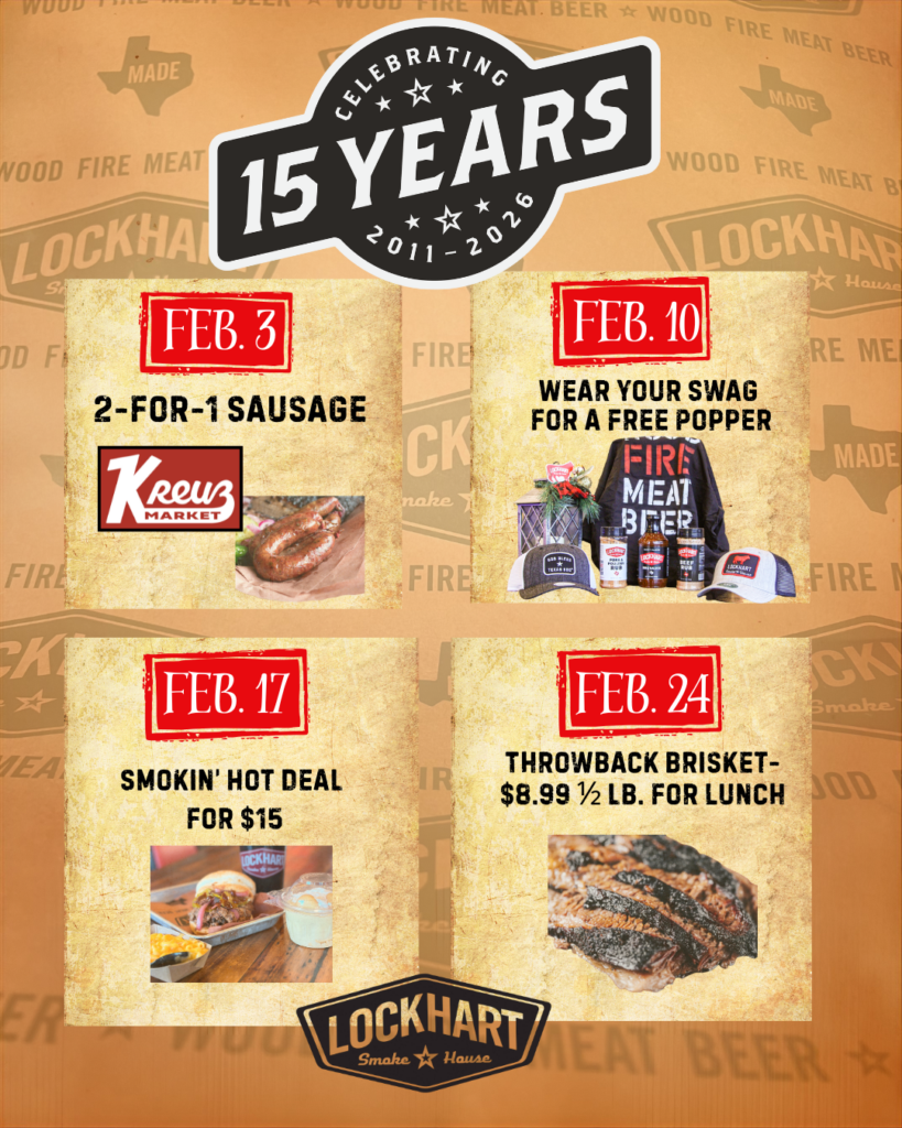 Lockhart Smokehouse brings true Central Texas barbecue to the Dallas–Fort Worth Metroplex with two family-owned and operated locations in Dallas’ Bishop Arts District and downtown Plano, plus a location inside Texas Live! in Arlington, operated under a licensing agreement with the Cordish Company. Whichever location you visit, you can count on a fun, flavorful, and unforgettable Lockhart Smokehouse experience!